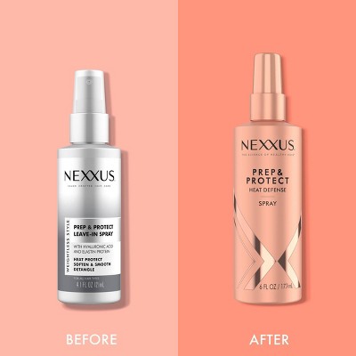 How to use? Start your styling routine with a heat protectant spray like our Prep and Protect Spray. After washing and conditioning your hair with your favorite Nexxus Regimen, spray the Thermal Shield Spray generously from root to tip on wet or dry hair. Comb the heat protection hairspray through and style your hair as usual.