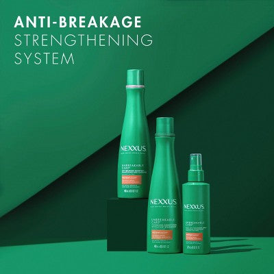 Our Nexxus Unbreakable Care™ scientifically proven system will create weightless volume and strengthen each hair strand from within, while a fortifying barrier reduces up to 97% of hair fall due to breakage* for less hair on your brush and fuller, thicker-looking hair. *vs. non-conditioning shampoo This conditioner is infused with a ProteinFusion™ blend with Biotin, Keratin, and Collagen Amino Acids to strengthen and protect hair from within. This shampoo and conditioner system is powered by our micro-thickening technology that creates weightless, thickening bonds between strands, adding shape for maximum fullness. Nexxus delivers salon quality results with Unbreakable Care™, strengthening hair and adding weightless volume for stronger, fuller, thicker-looking hair with every wash. How to Use: Start by massaging Nexxus Unbreakable Care™ Anti-Breakage Shampoo into the scalp, lather and rinse. Then follow with Nexxus Unbreakable Care™ Thickening Conditioner for best results. Spread through wet hair and rinse. Born in salons and perfected by science, each Nexxus system is crafted with protein blends from nature's most precious ingredients and infused with high performing technologies to bring your hair back to life. Our Nexxus collections were formulated by our team of experts using protein science to identify the precise solutions your hair needs. Discover your collection today.