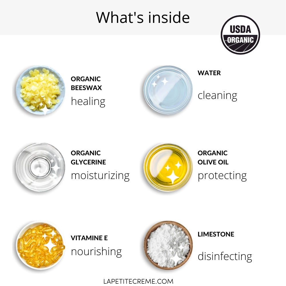 With 6 natural ingredients and no harmful chemicals, La Petite Creme is a certified Organic cleanser and a diaper soother all-in-one.
