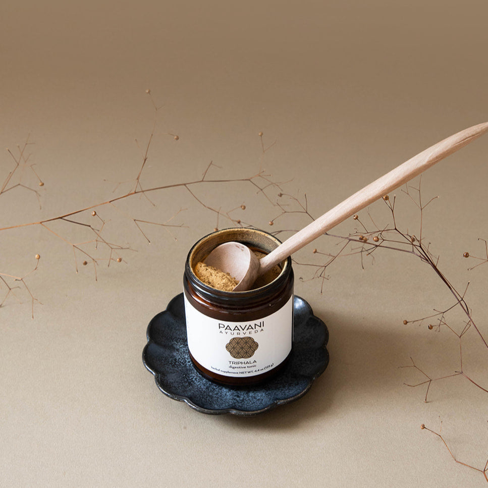 Triphala is a classical Ayurvedic formulation made from three revered Indian superfruits: Haritaki, Amalaki & Bibhitaki. Together, they work to aid digestion, support the assimilation of nutrients, promote regular elimination & tone the colon.
